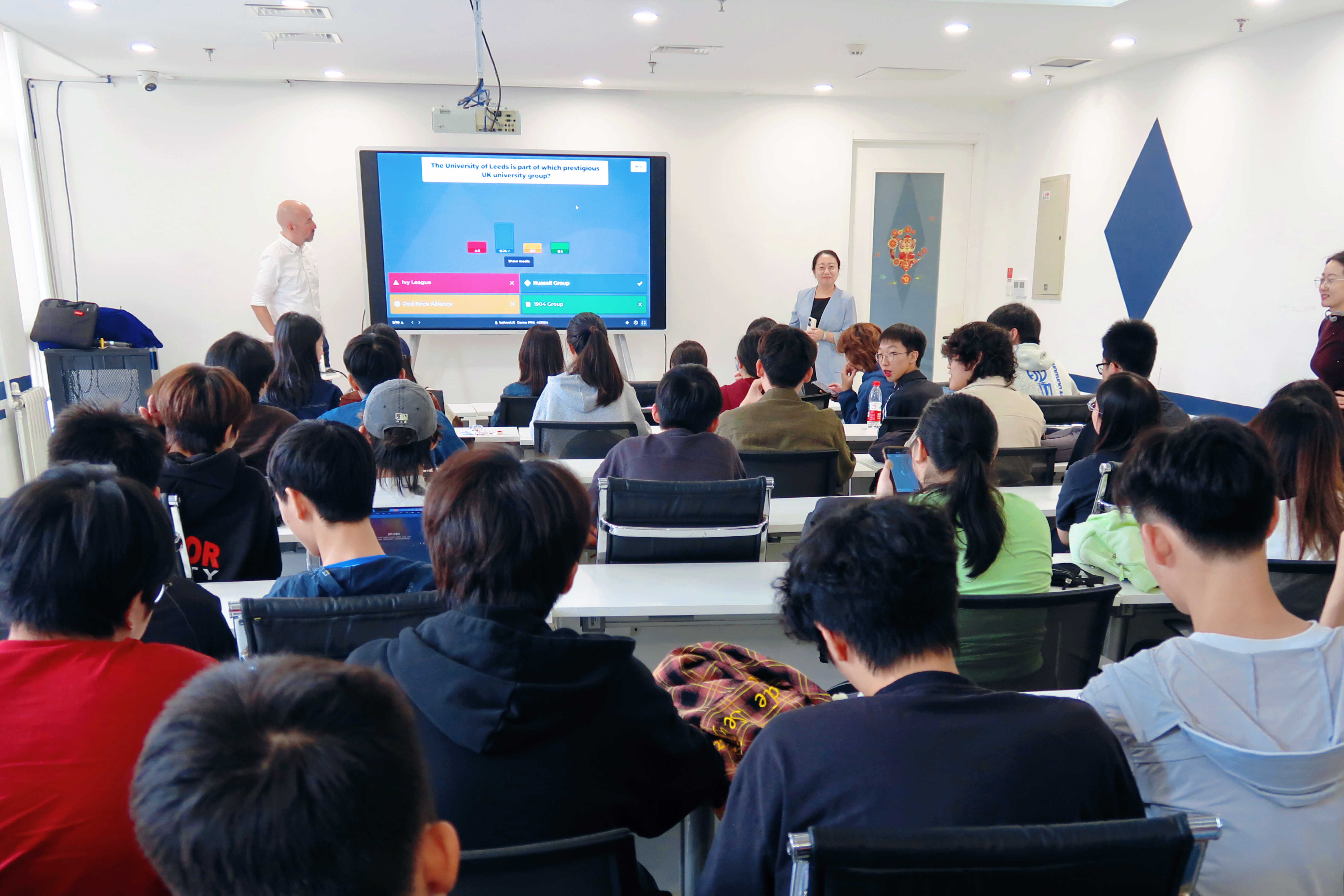 在专题讲座结束后,为加深学生对利兹大学特色的理解,Martin Maule主任组织了一场别开生面的Kahoot互动问答竞赛。竞赛题目涵盖此前介绍的大学排名、学科优势、城市生活及学生支持服务等内容。