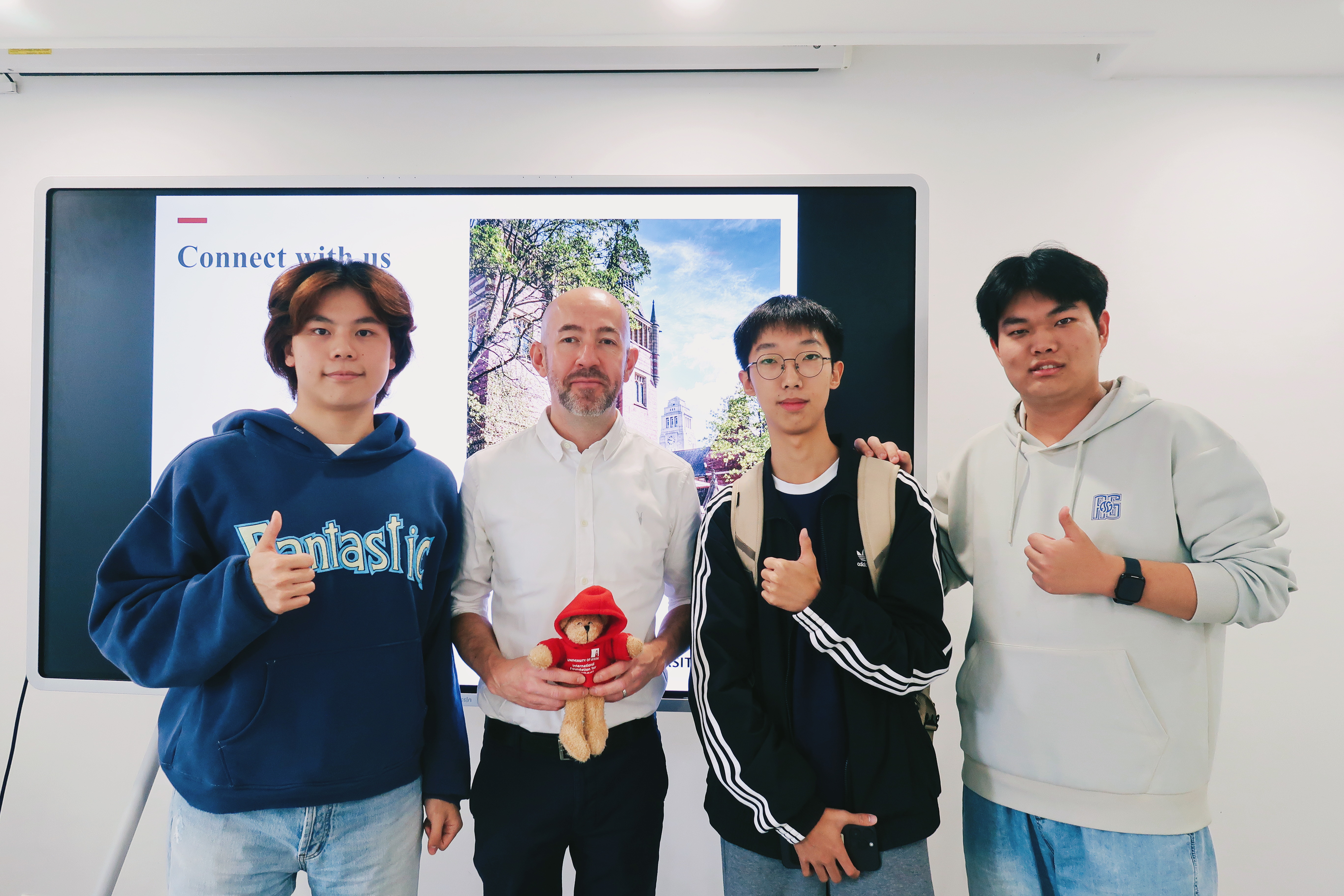 同学们通过手机端踊跃参与,争相抢答,现场气氛热烈活跃。多位反应迅速、回答正确的同学获得了利兹大学主题的毛绒玩具作为奖励,将现场气氛推向高潮。