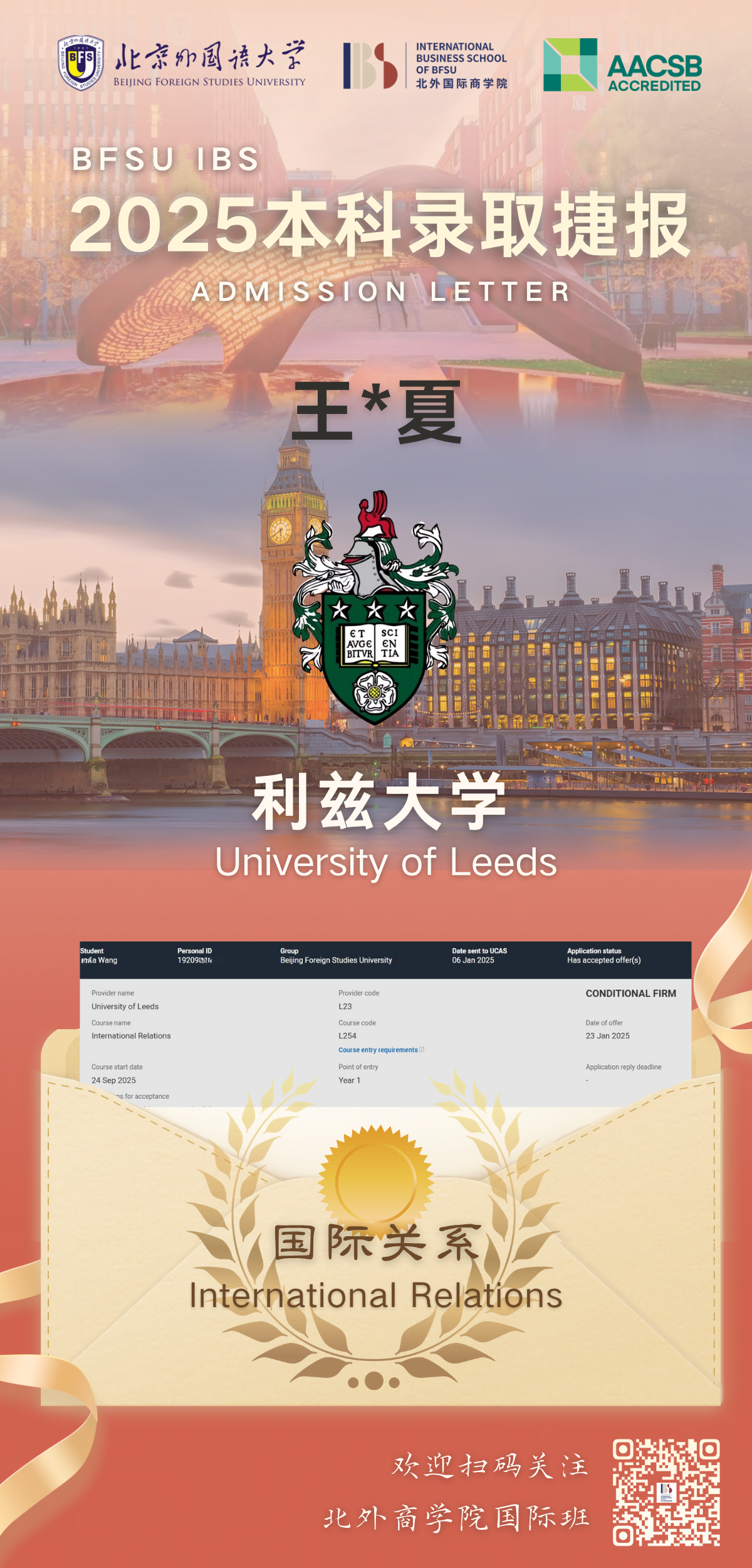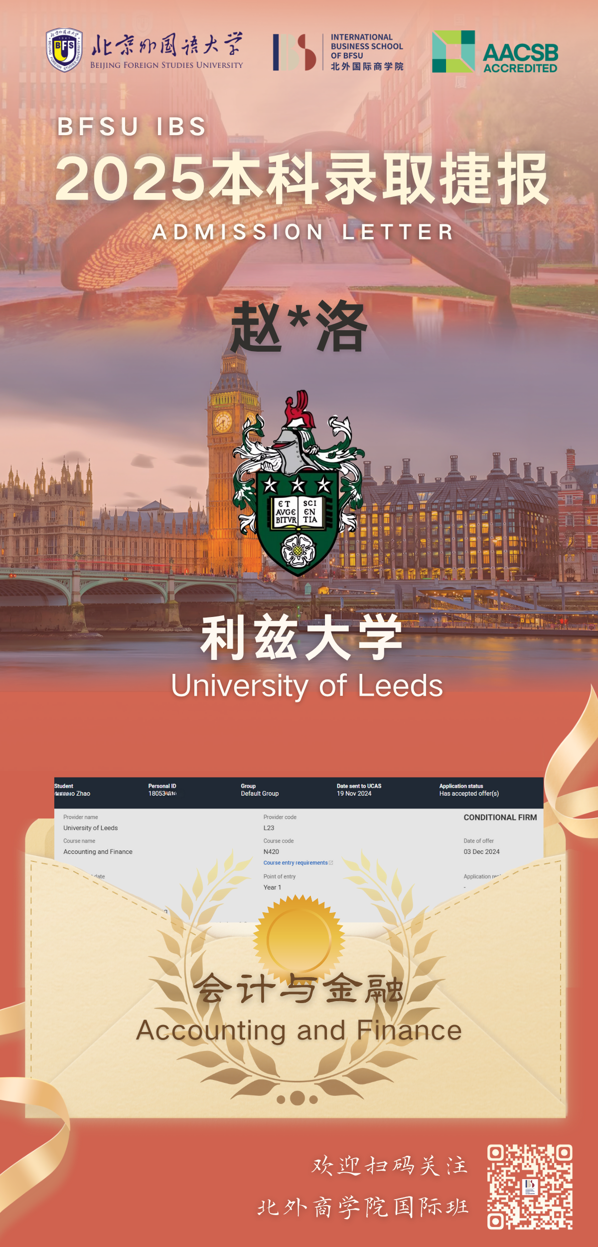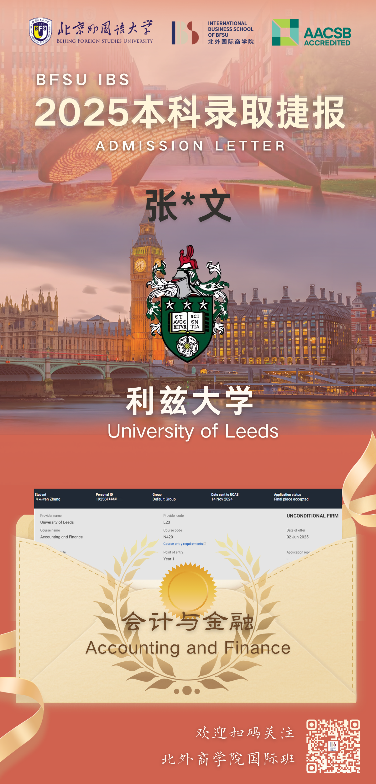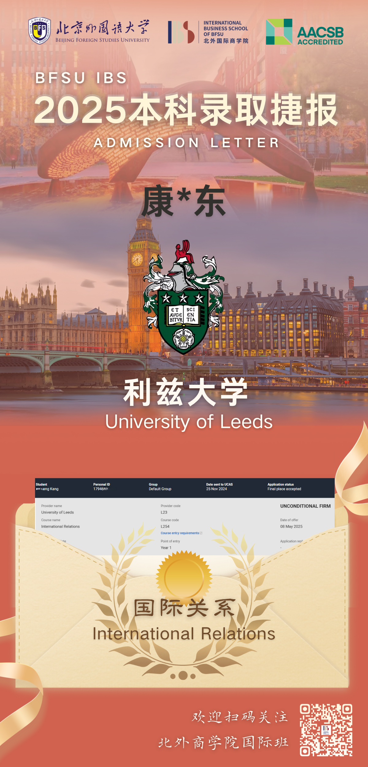 为系统提升学生在全球高等教育领域的竞争力,北京外国语大学国际商学院与利兹大学共同开展国际合作本科1+3/2+2项目。