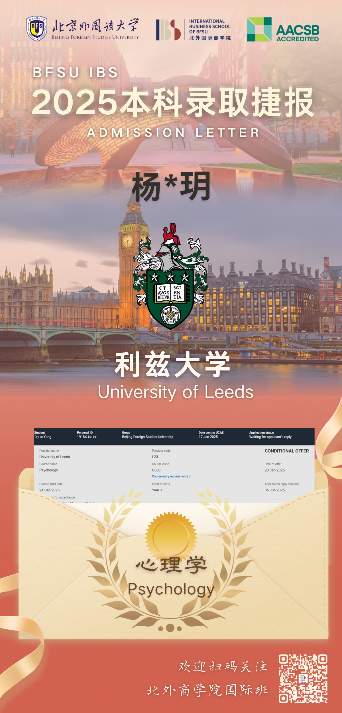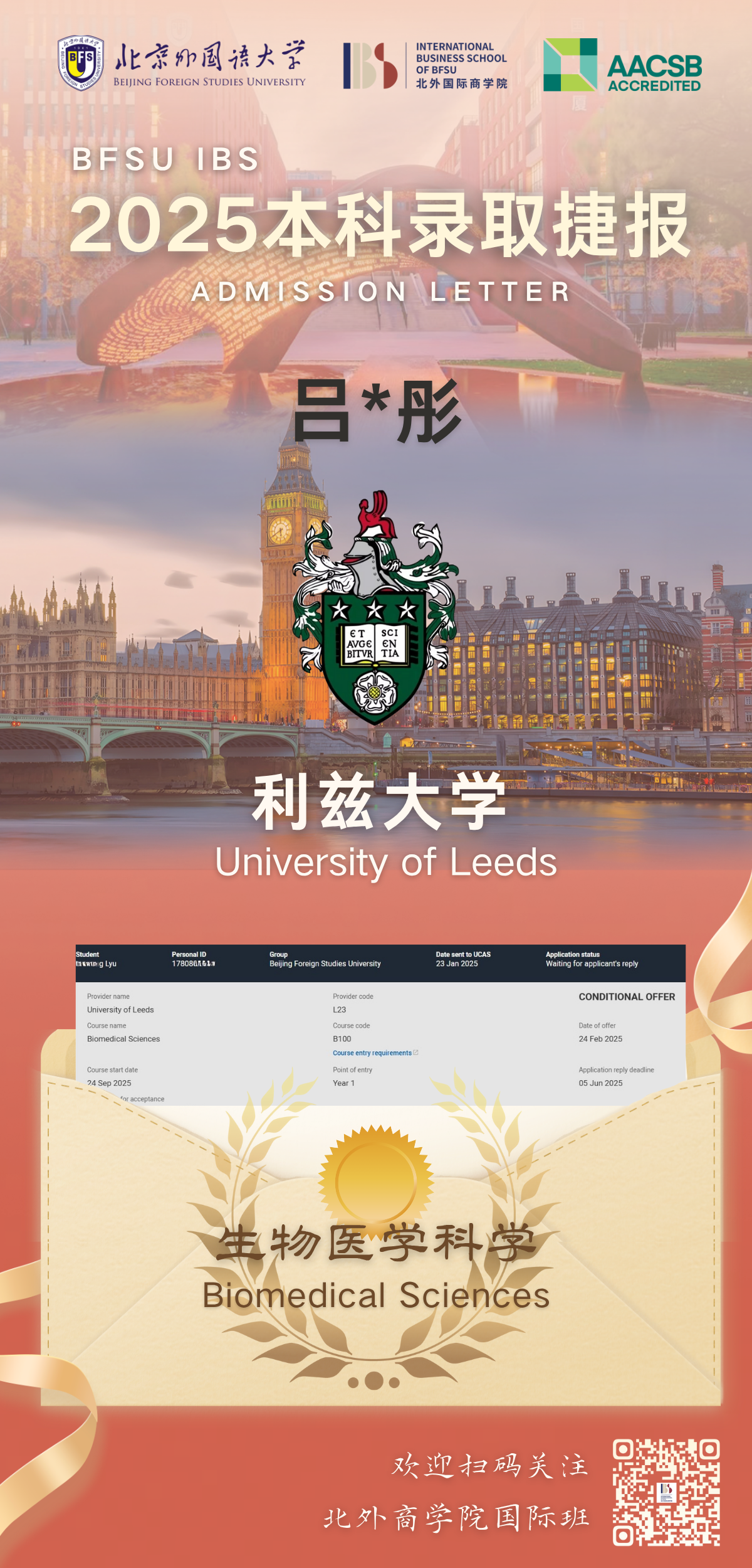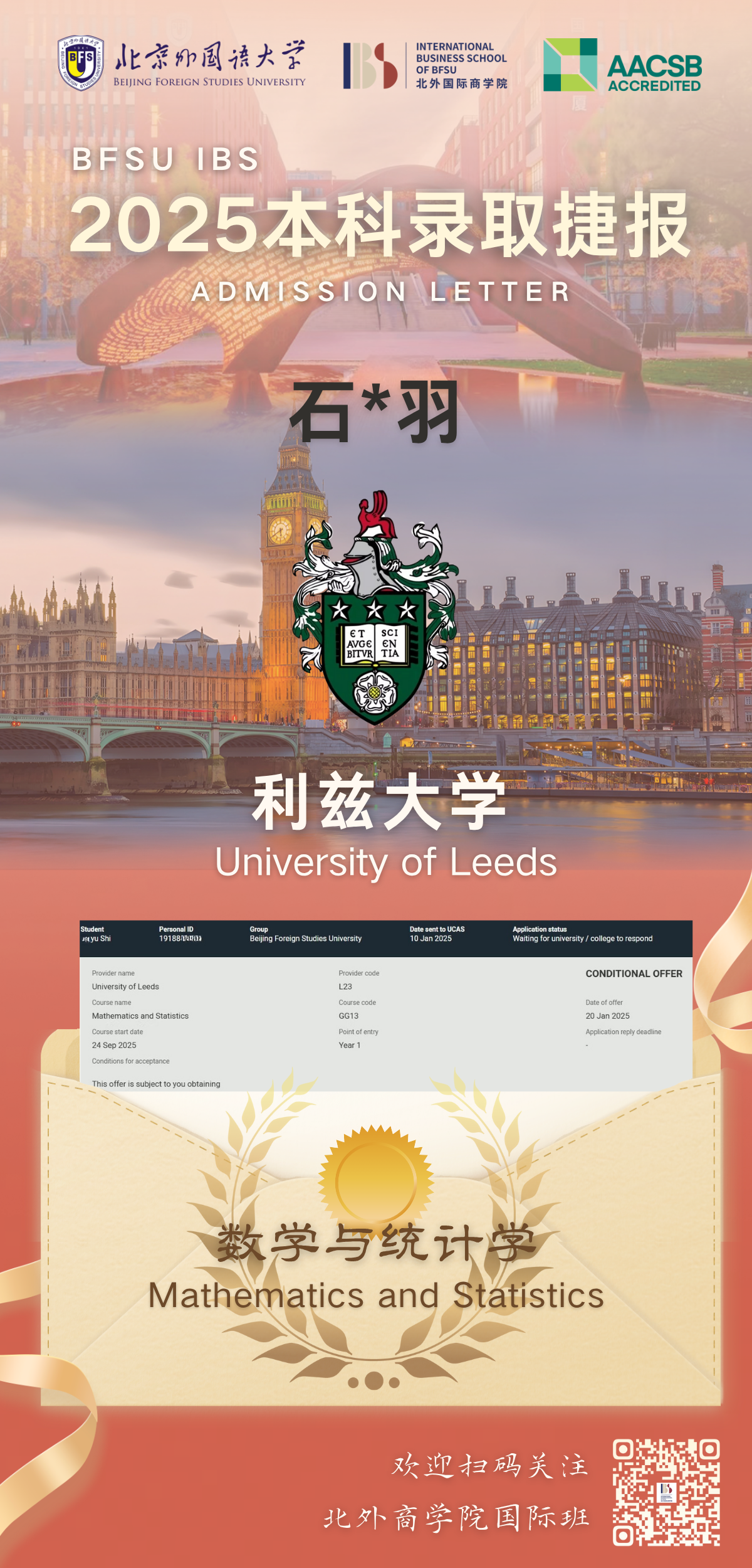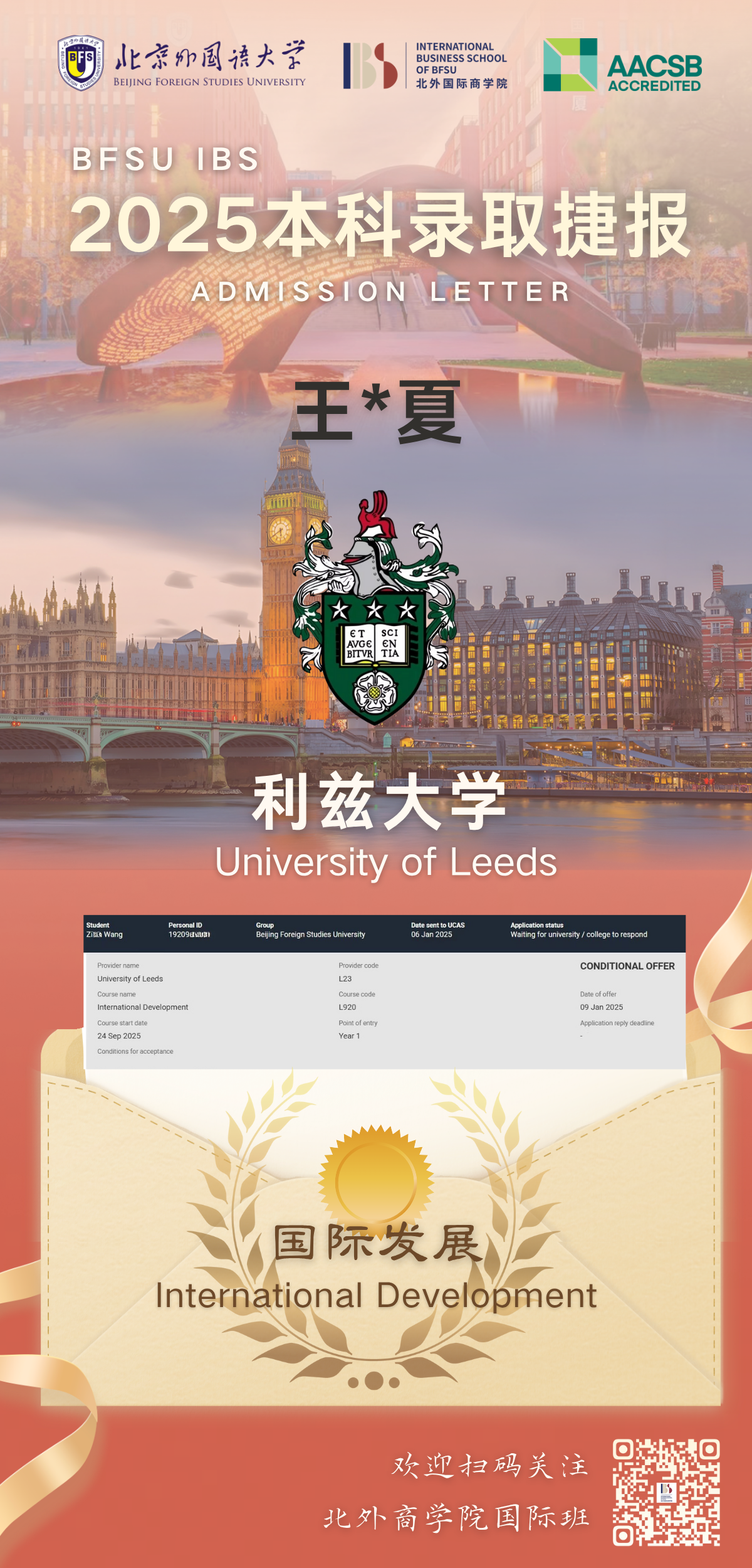 为系统提升学生在全球高等教育领域的竞争力,北京外国语大学国际商学院与利兹大学共同开展国际合作本科1+3/2+2项目。