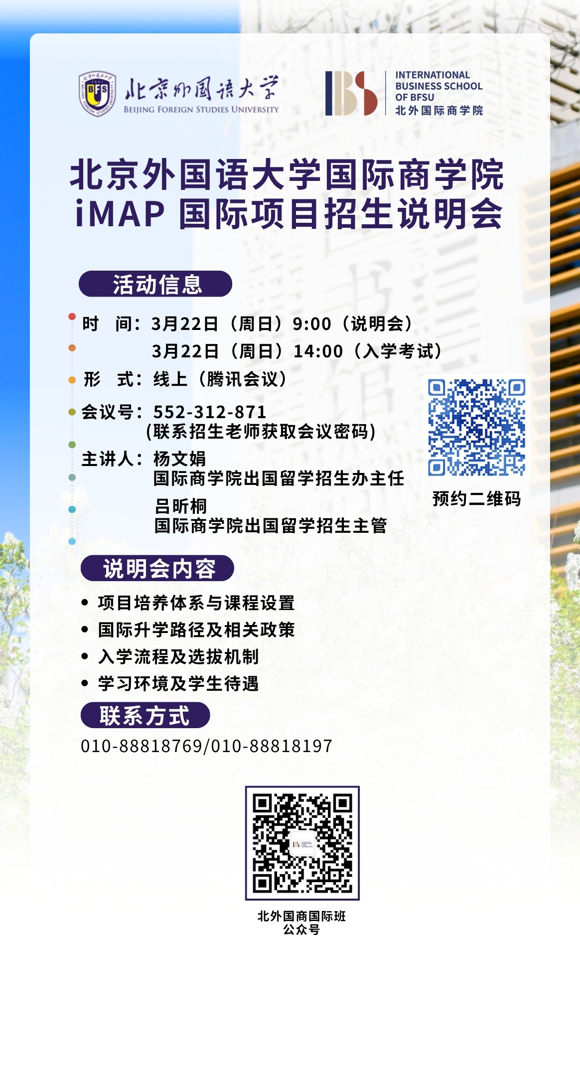 3.22 线上说明会|北外国商iMAP国际教育项目