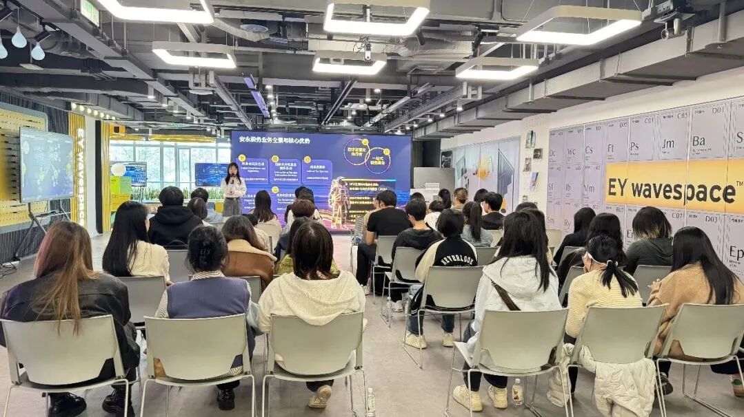 随后,安永团队全面介绍了安永在大中华区发展布局:安永在大中华区拥有34个办事处、超2万名专业人士,注册会计师数量位居行业前列,在审计、税务、咨询、战略与交易咨询等领域市场优势突出。在人才培养与职业发展方面,安永构建了清晰的职业发展通道与系统化培养体系,全方位赋能员工成长。针对不同年级学生的职业规划需求,团队详细讲解了秋招、春招、寒假实习、“精英计划”、校园大使等丰富的校园招聘项目以及品牌项目,极大地激发了同学们的职业探索热情。