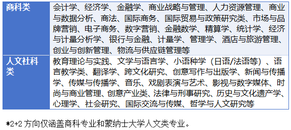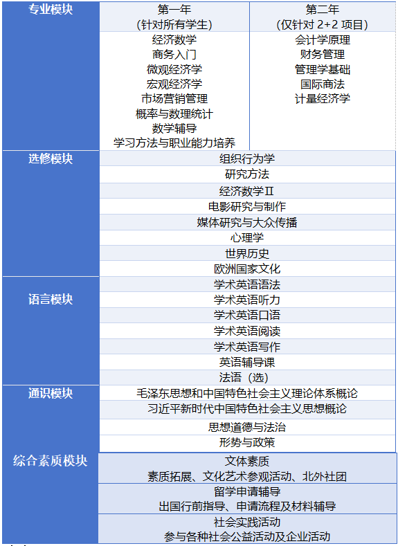 备注:若申请欧洲国家的合作院校,学生需完成额外课程,如法语和欧洲国家文化,可优先参与我院和法国合作院校组织的短期交流项目、企业实践项目等;也可结合学生情况申请合作外大学。