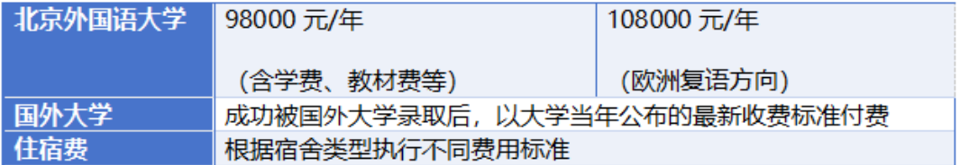 2+2:学生在北京外国语大学国际商学院修读为期2年的预科及大一课程(学习英语和商科方向的专业课程,约占国外大学总学分的1/3)。顺利完成学业并通过所有考试者,可根据语言成绩和北外课程申请转入国外合作大学就读大二商科课程。