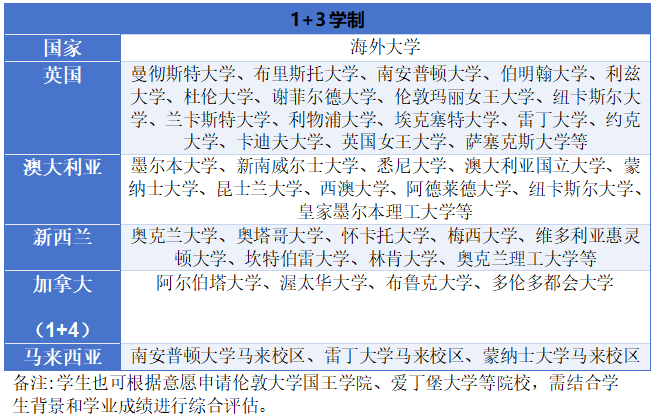 1+3:学生在北京外国语大学国际商学院修读为期一年的预科课程(EAP英语成绩可直接替代雅思申请国外大学)。顺利完成学业并通过所有考试者,可根据成绩申请转入国外合作大学。