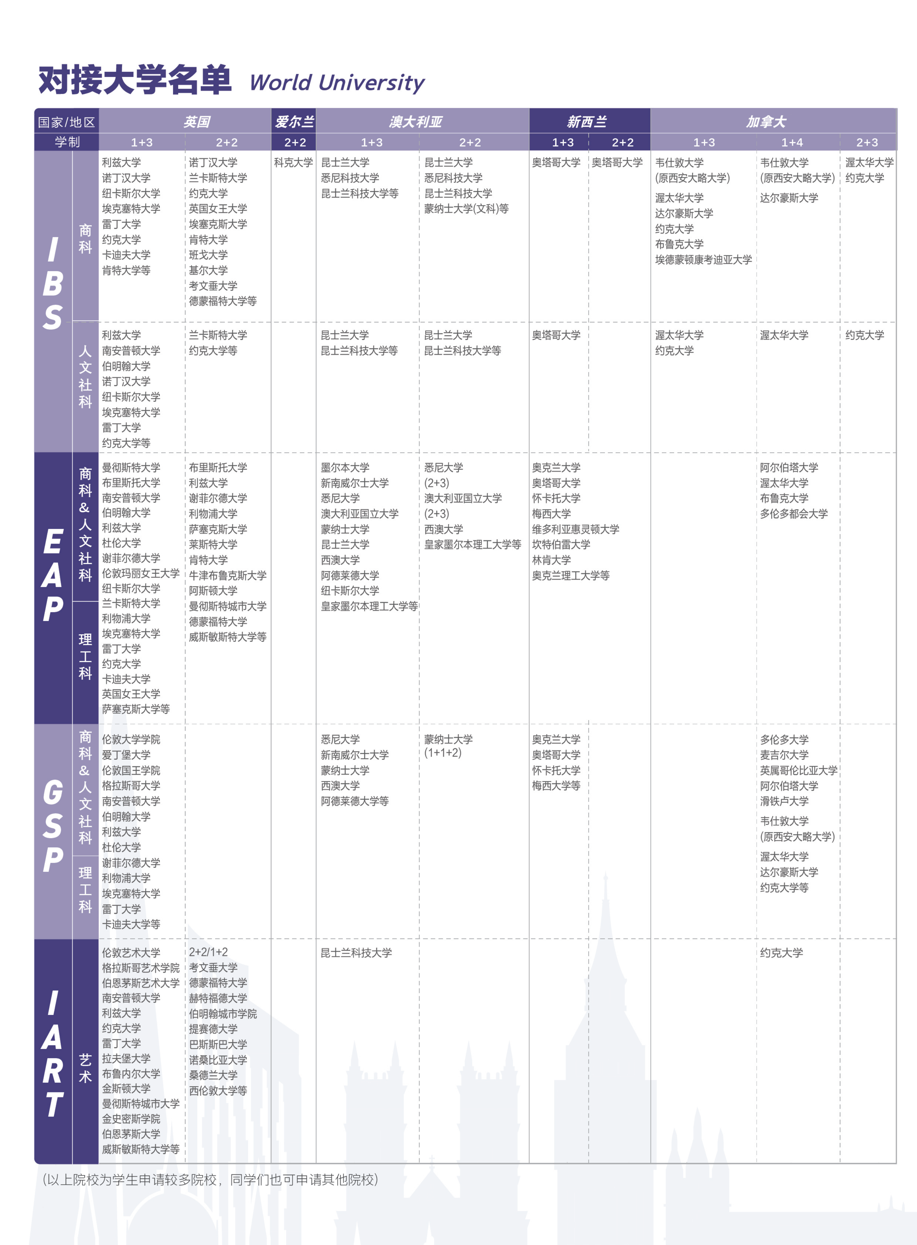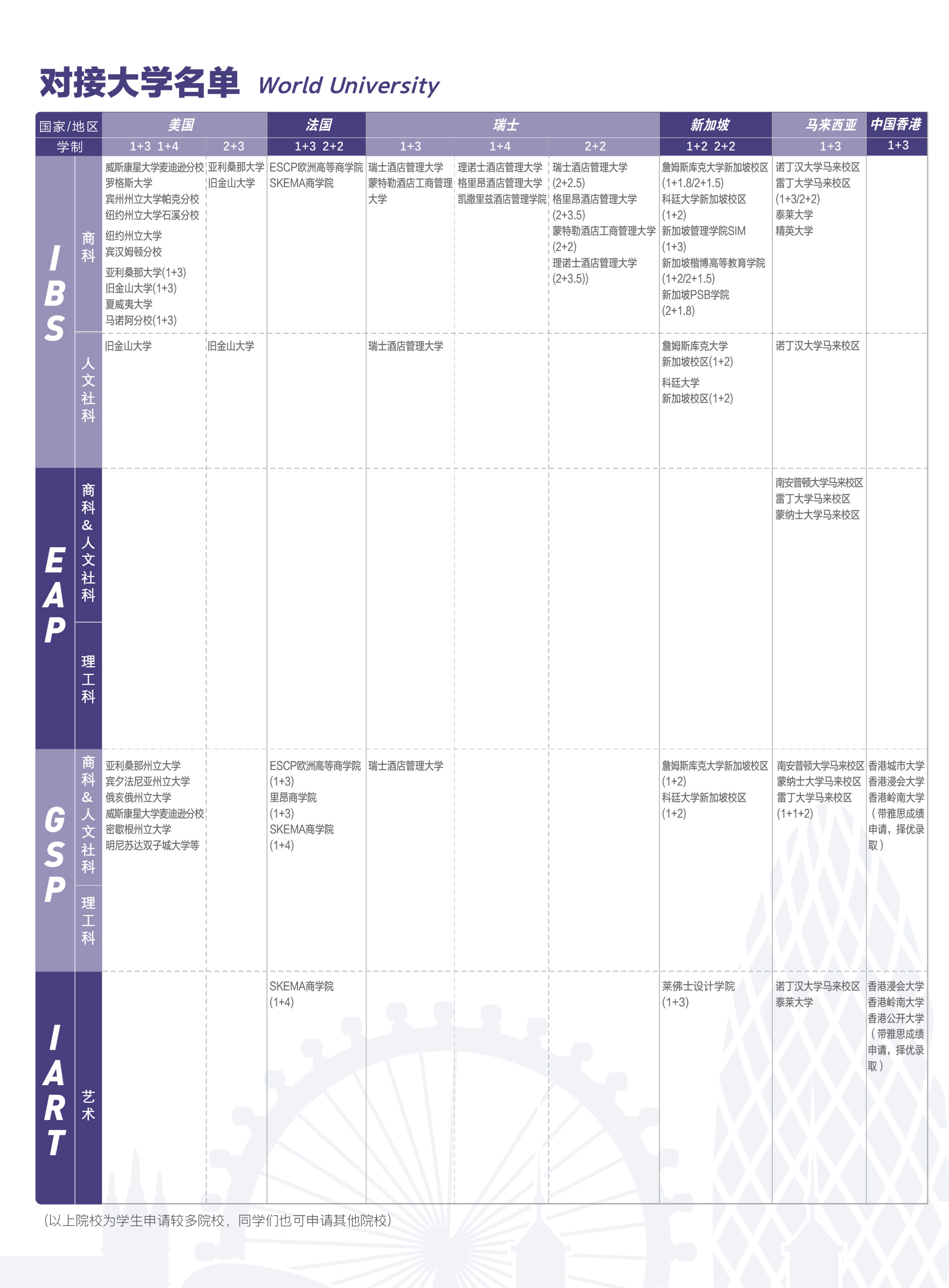 合作院校众多,遍布多国,学生也可选择合作范围以外的学校,满足学生多样化需求;